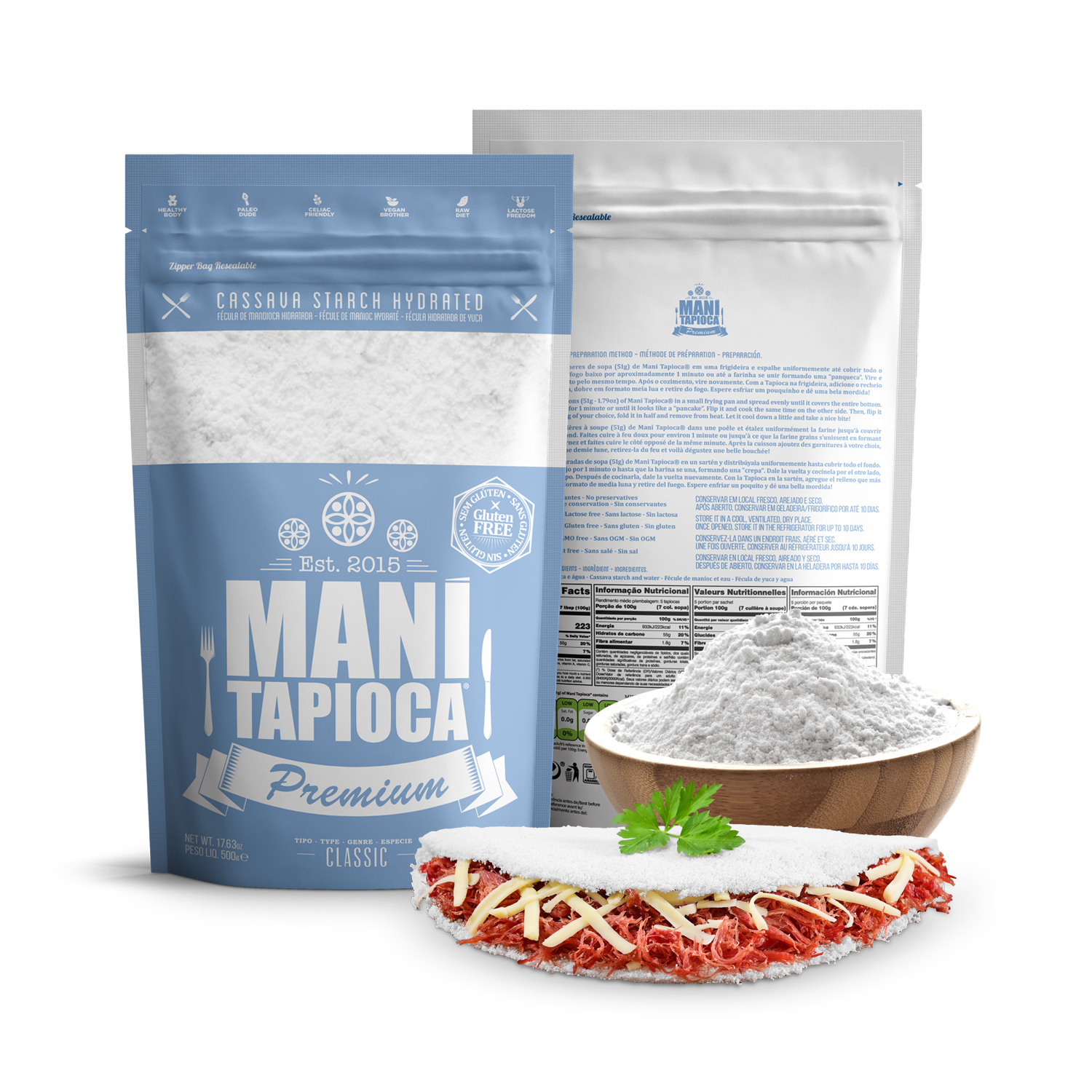 Ideal para as mais diversas receitas além da básica tapioca. Use a sua imaginação e construa uma vida cheia de saúde e bem-estar.